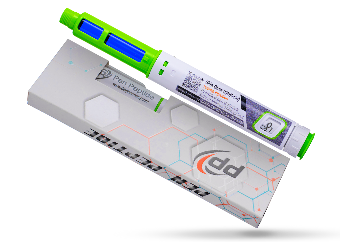 GHK-Cu (гліцил-L-гістидил-L-лізин-мідь) стимулює синтез колагену та еластину, активує антиоксидантний захист, прискорює регенерацію шкіри та загоєння. Клінічно доведений ефект омолодження.